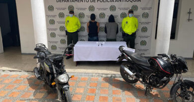 Las autoridades destacan la captura de alias “Recojo”, presunto cabecilla de la banda y alias “Colacho”, presunto receptor de motocicletas hurtadas en los municipios de Marinilla y El Peñol.