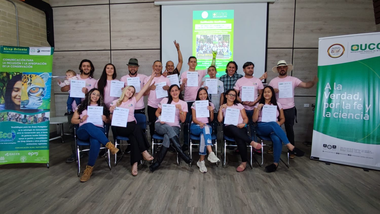 Este sábado 23 de abril se llevó acabo en la Universidad Católica de Oriente un evento de certificación de 15 nuevos gestores locales en conservación y comunicación para el desarrollo, quienes serán líderes y liderezas ambientales provenientes de diferentes municipios del Oriente Antioqueño.